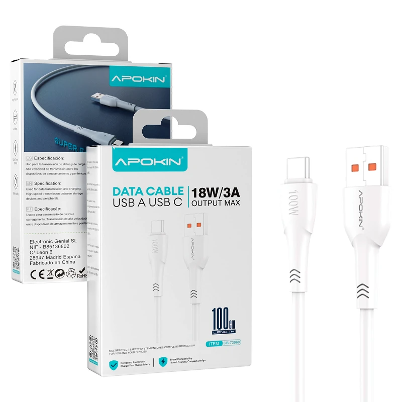 cabo USB-A para Tipo C APOKIN 73060 combina velocidade, durabilidade e funcionalidade, tornando-o um acessório essencial para sua rotina tecnológica.